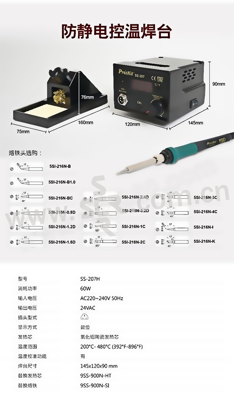 ·符合CE认证。·控制板模设计,维修容易。·采用CPU数字控制电路,控制温度200-480°C(392~896°F)。·输入电压AC 220-240V/HZ。·采用锌合金面板设计,不易变形,流线可堆叠外型,开关前置、斜面视线无角差。·适合各种环境使用焊台、烙铁架分离设计,使用便利。 ·与市场上通用936烙铁头共用,是进行焊接维修时的理想选择。"