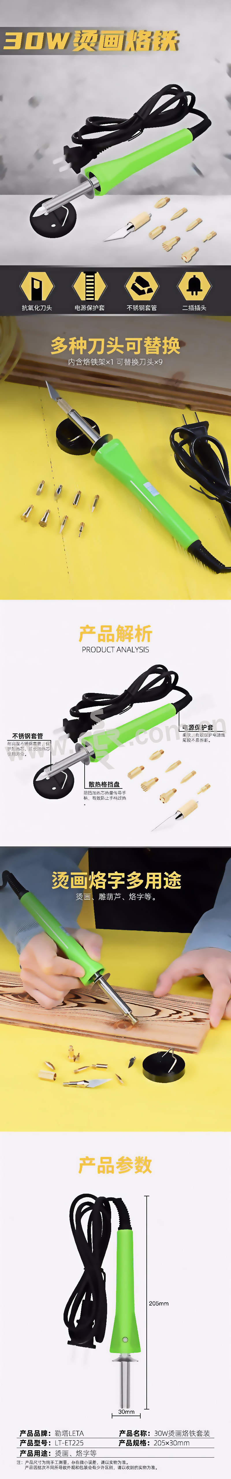·多用途,多种刀头,内含烙铁架