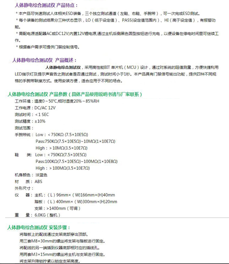人体静电综合测试仪