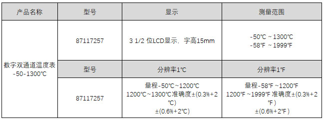 量程-50℃~1200℃ 1200℃~1300℃准确度±(0.3%+2℃) ±(0.6%+2℃)