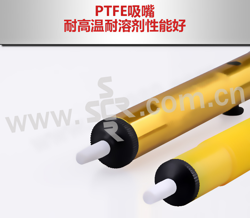 ·优质PTFE吸嘴,耐高温,耐溶剂性能好。