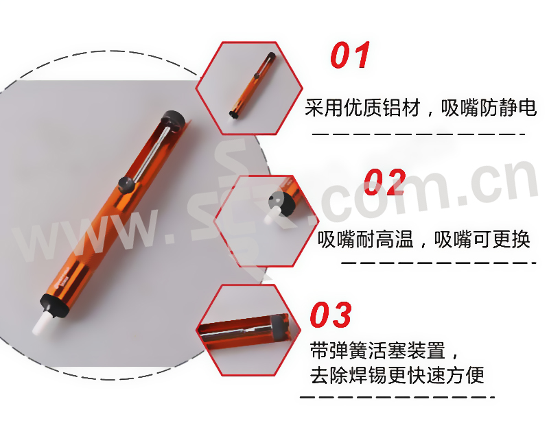 ·带弹簧活塞装置,去除焊锡更快速方便。