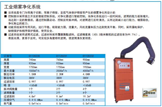 ·该系统是专门为等离子切割、等离子焊接、亚弧气体保护焊接等产生的烟雾净化而设计的