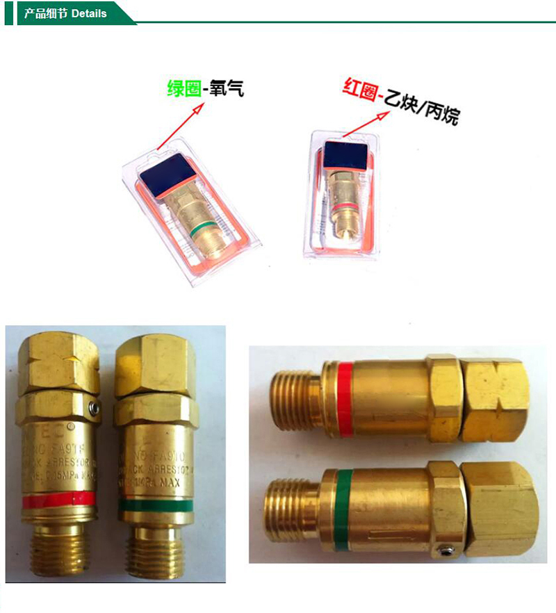 ·微孔散热型火焰熄灭装置确保火焰熄灭 ·气体单向阀在回火过程自动将气源瞬间切断 ·具有自动复位功能可连续作业 ·直接连接在气体减压器的出口上使用