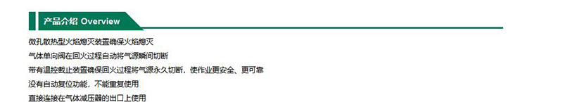 ·气体单向阀在回火过程自动将气源瞬间切断