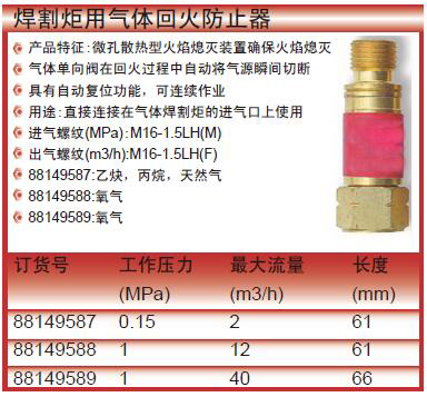 ·气体单向阀在回火过程中自动将气源瞬间切断