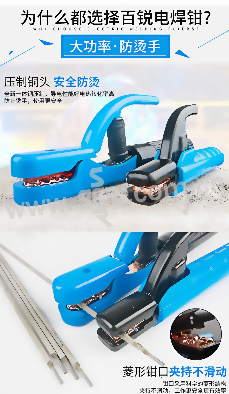·塑料手柄防止烫手,使用安全。钳口采用科学的菱形结构,夹持不滑动,工作更安全有效。