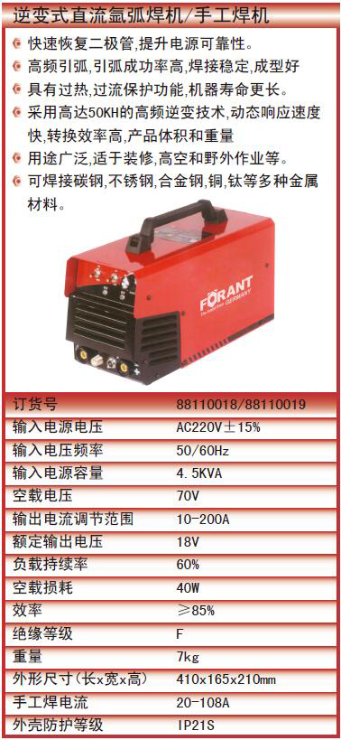 ·快速恢复二极管,提升电源可靠性。 ·高频引弧,引弧成功率高,焊接稳定,成型好 ·具有过热,过流保护功能,机器寿命更长。 ·采用高达50KH的高频逆变技术,动态响应速度 快,转换效率高,产品体积和重量