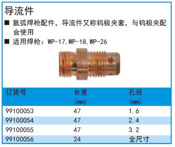 ·氩弧焊枪配件,导流件又称钨极夹套,与钨极夹配合使用 ·适用焊枪:WP-17,WP-18,WP-26