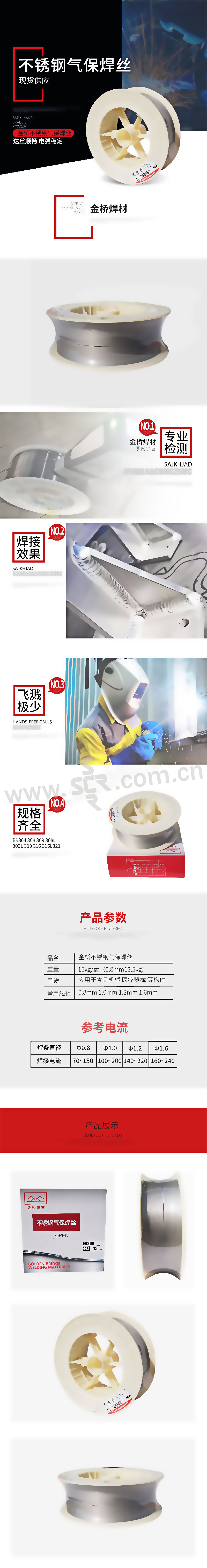 JINQIAO/金桥 316L不锈钢气保焊丝 JQ-MG316L-0.8mm 12.5kg 1盒