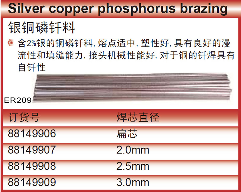 ·含2%银的铜磷钎料,熔点适中,塑性好,具有良好的漫流性和填缝能力,接头机械性能好,对于铜的钎焊具有自钎性