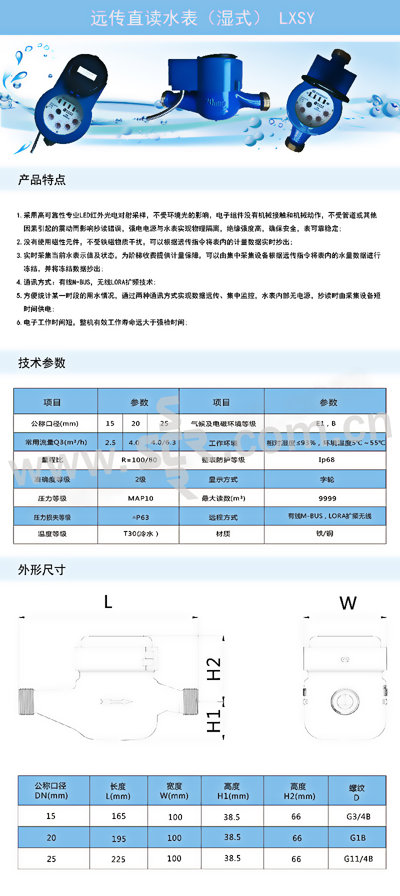 ·通讯方式:有线M-BUS,无线LORA扩频技术