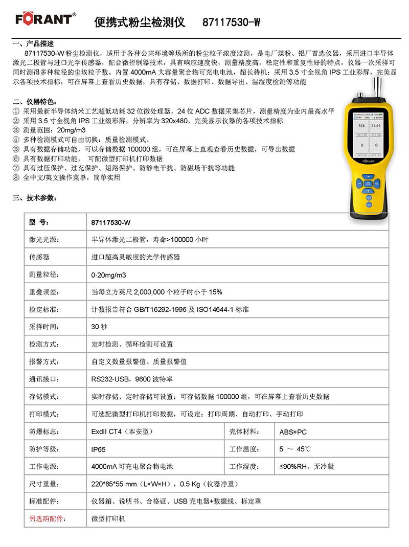 测量粒径:0-20mg/m3
