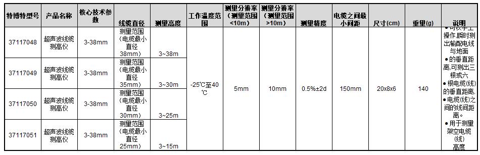 · 可以手工操作,瞬时测出输配电线与地面 ·的垂直距离,可测出三根或六 · 根电缆(线)的垂直距离, · 电缆(线)之间的线间距离。 ·用于测量架空电缆(线)高度