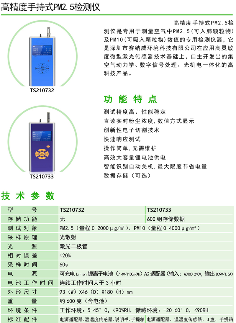 ·产品外形小巧精致,方便携带 .PM2.5浓度和环境温度一屏双显,一目了然