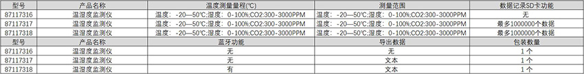 规格:  温度:-20—50℃;湿度:0-100%;CO2:300-3000PPM 制造商型号:  87117318