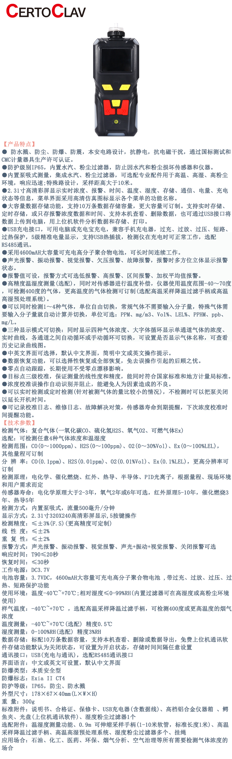 ·小巧便捷,好携带,防爆,定制型多合一检测