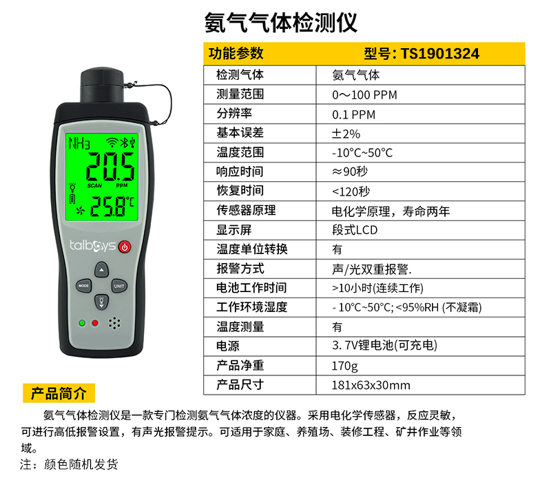 ·氨气气体检测仪是一款专门检测氨气气体浓度的仪器。采用电化学传感器,反应灵敏,可进行高低报警设置,有声光报警提示。