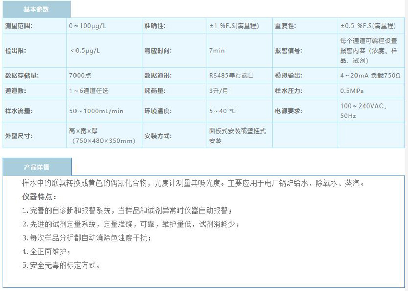 双通道数显中文在线联氨分析仪