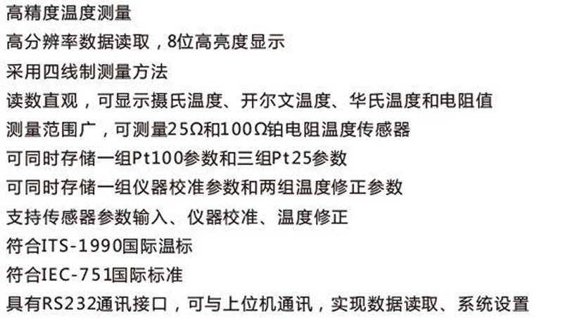 ·本产品在整个温度测量量程内准确度达±0.1℃。