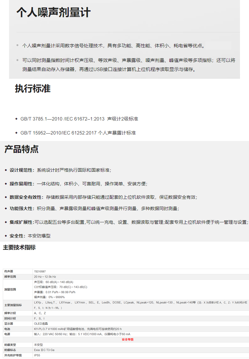 数显个人噪声计量计 本安型