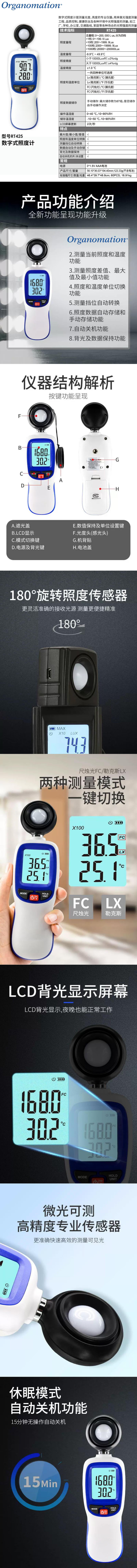·测量当前照度和温度功能 ·测量照度差值、最大值及最小值功能 ·照度和温度单位切换功能 ·测量量程(0 200,000)勒克斯,测量挡位自动转换 ·具有照度数据自动存储和手动存储功能 ·自动关机的开/关设置功能 ·背光及数据保持功能 ·此款数字式照度计配有通过蓝牙通信的手机APP,利于对此照度 计的各种操作