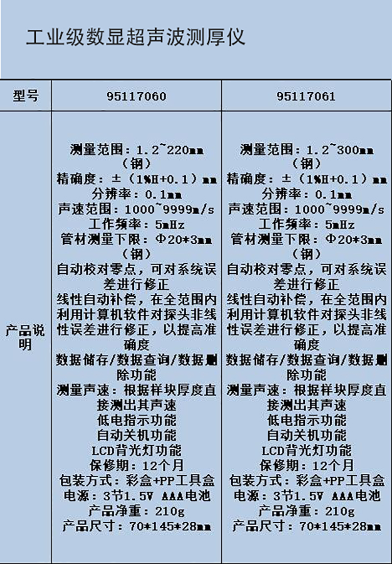 工业级数显超声波测厚仪 95117060 1.2~220mm 1台