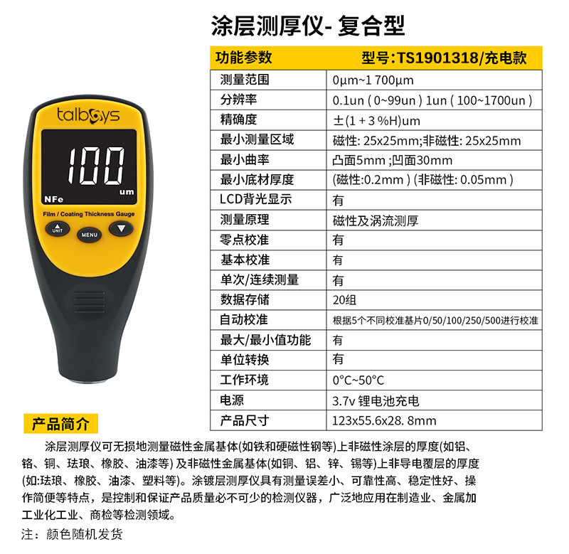 ·涂镀层测厚仪具有测量误差小、可靠性高、稳定性好、操作简便等特点,是控制和保证产品质量必不可少的检测仪器