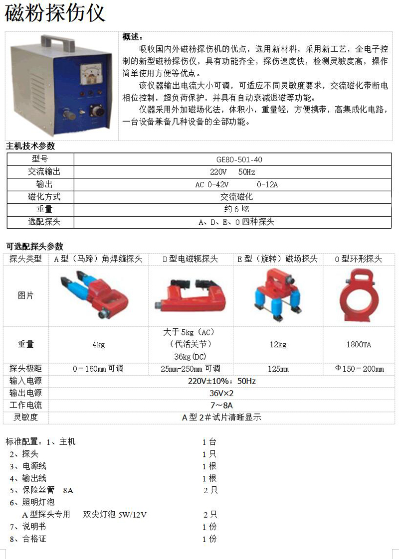 ·体积小、重量轻、提升力大和活动关节可调等特点,适用平面焊缝、角焊缝、钢管、压力容器、管道、轴及形状复杂的零件的探伤。