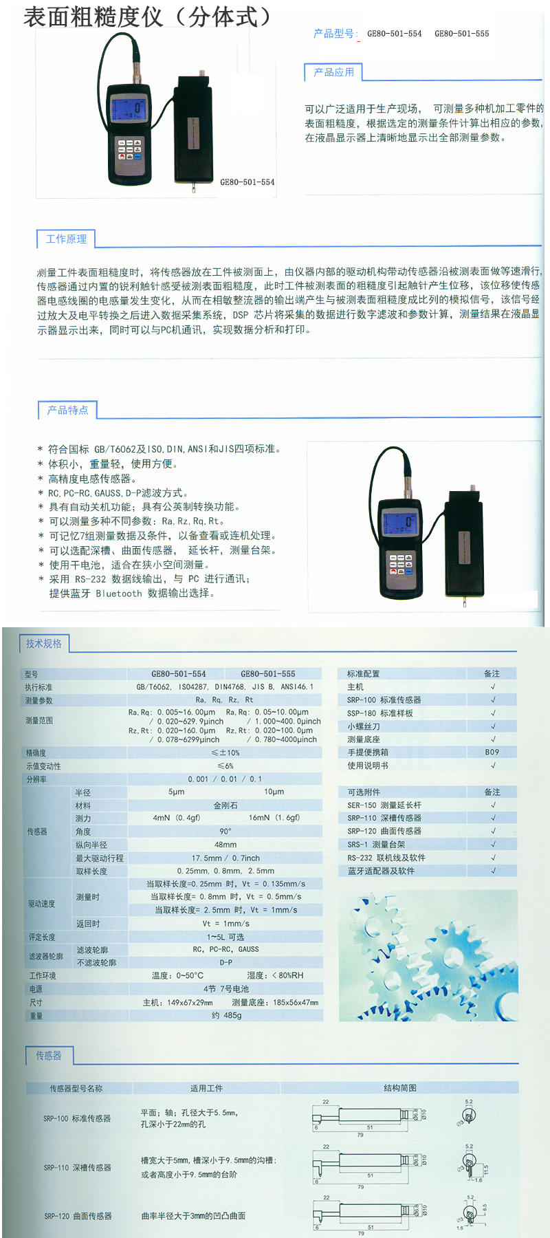 J154824 GE80-501-554 0.005-16.00μm/0.020-629.9μinch 传感器 ≤±10% 分体式表面粗糙度仪 22620.40