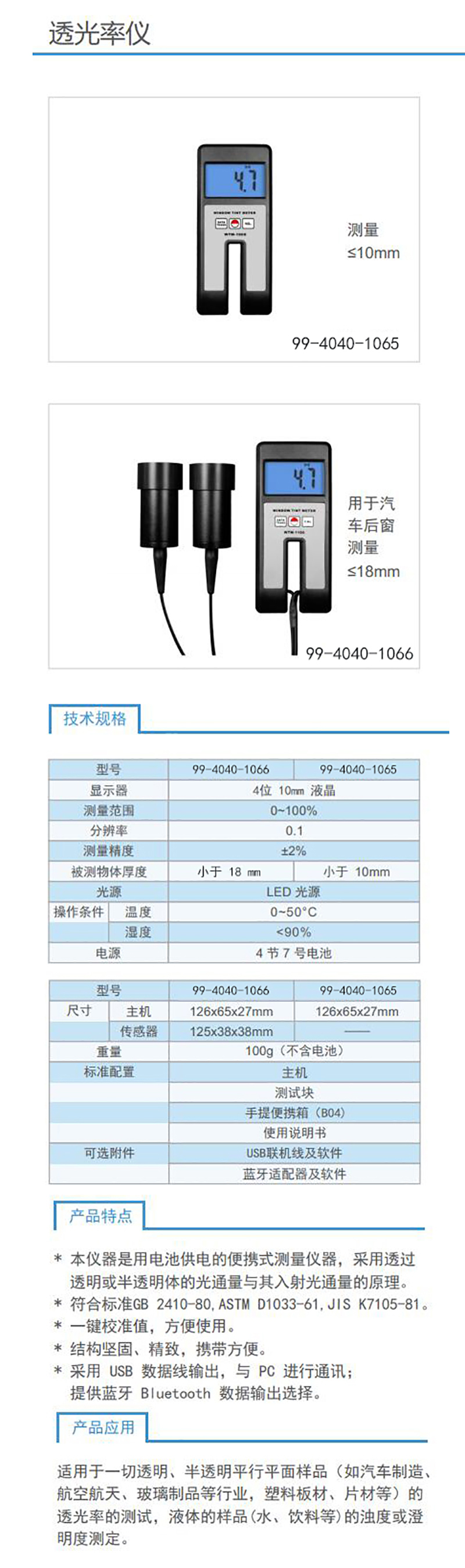 ·本仪器是用电池供电的便携式测量仪器,采用透过透明或半透明体的光通量与其入射光通量的原理。