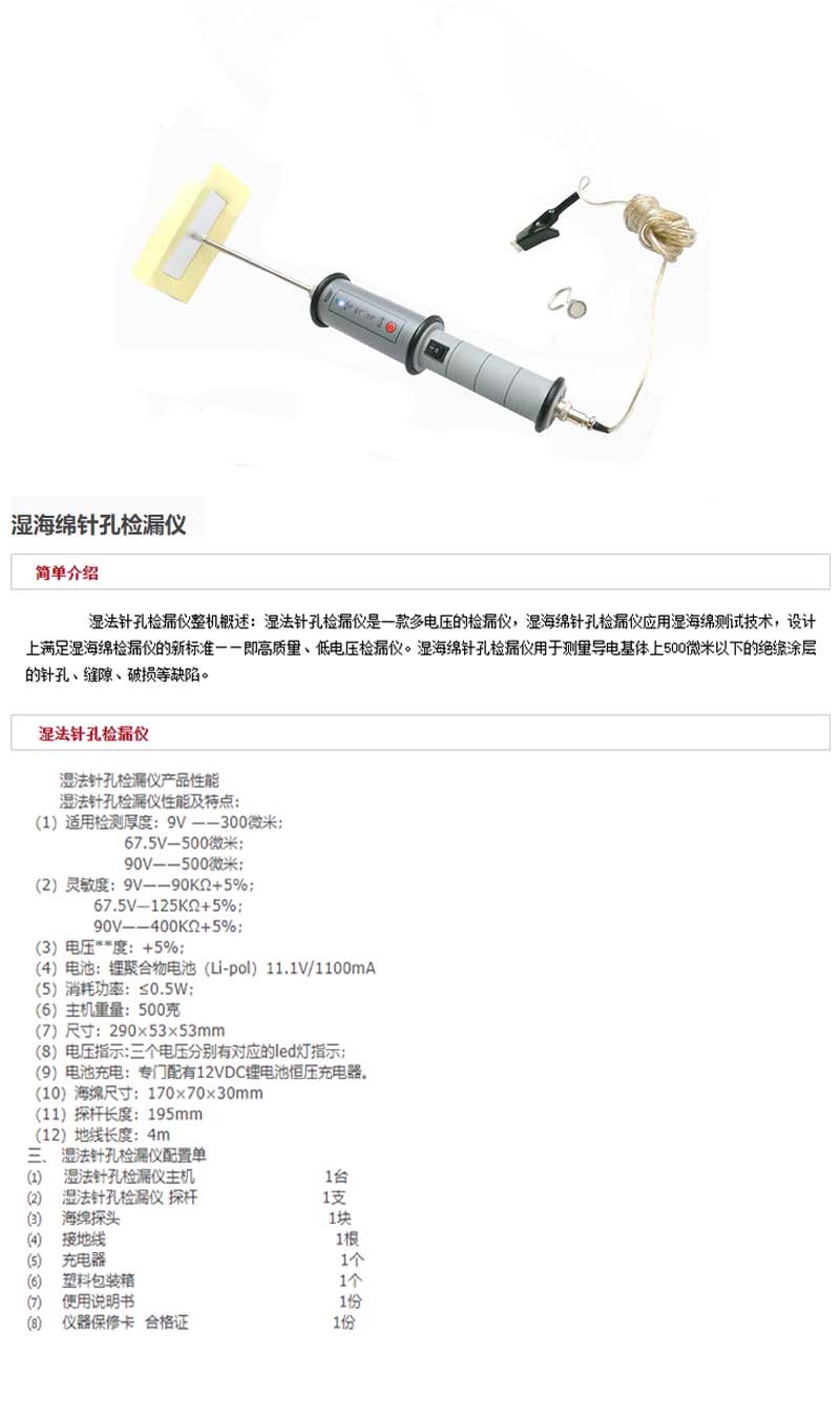 湿海绵针孔检漏仪