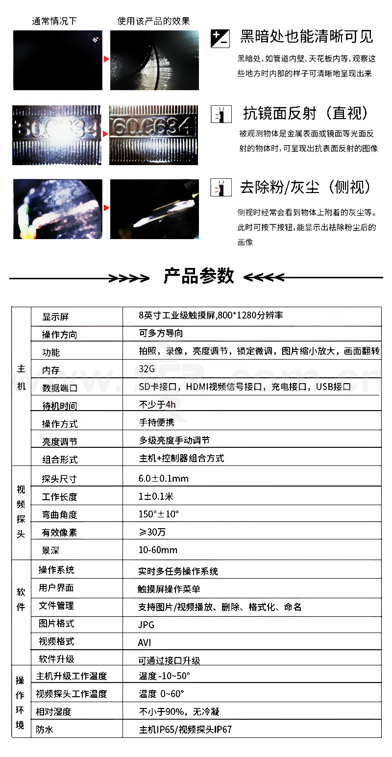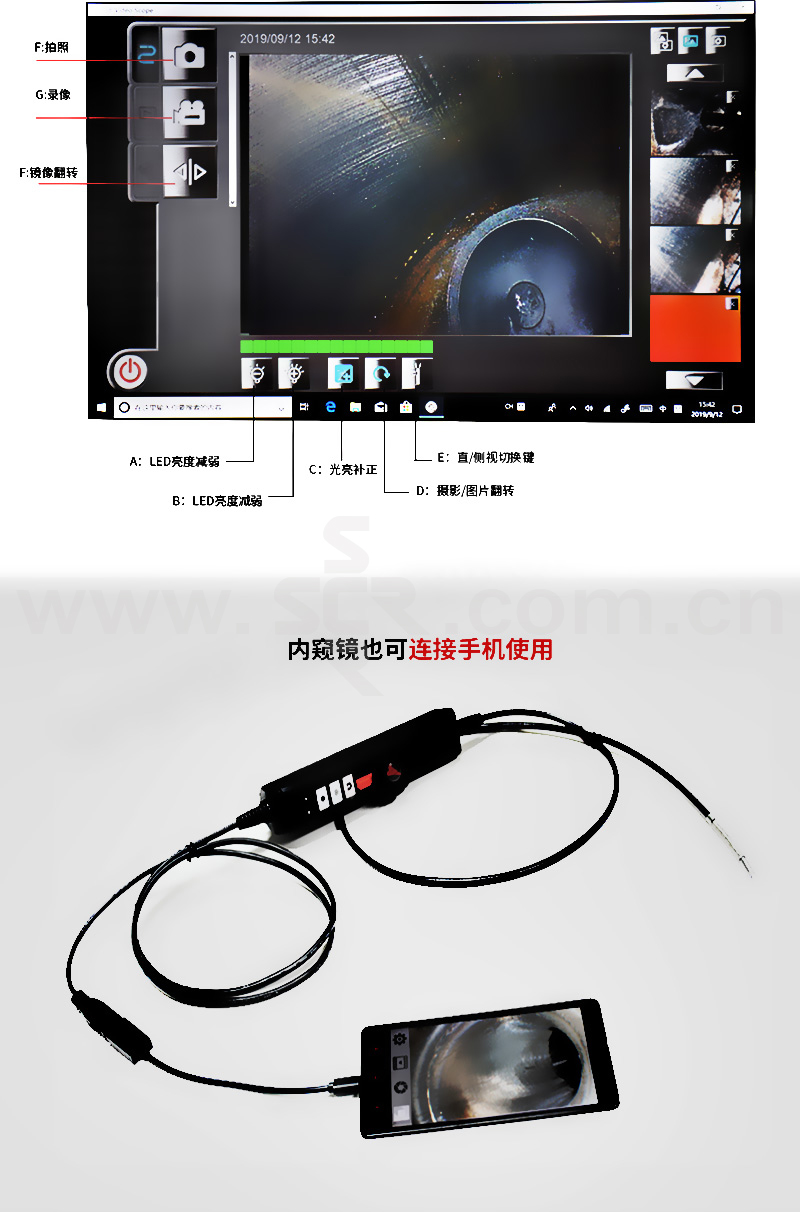 ANYTY/艾尼提 USB工业检测内窥镜 3R-XFIBER60-B 直径6mm USB连接平板 双转向 1套
