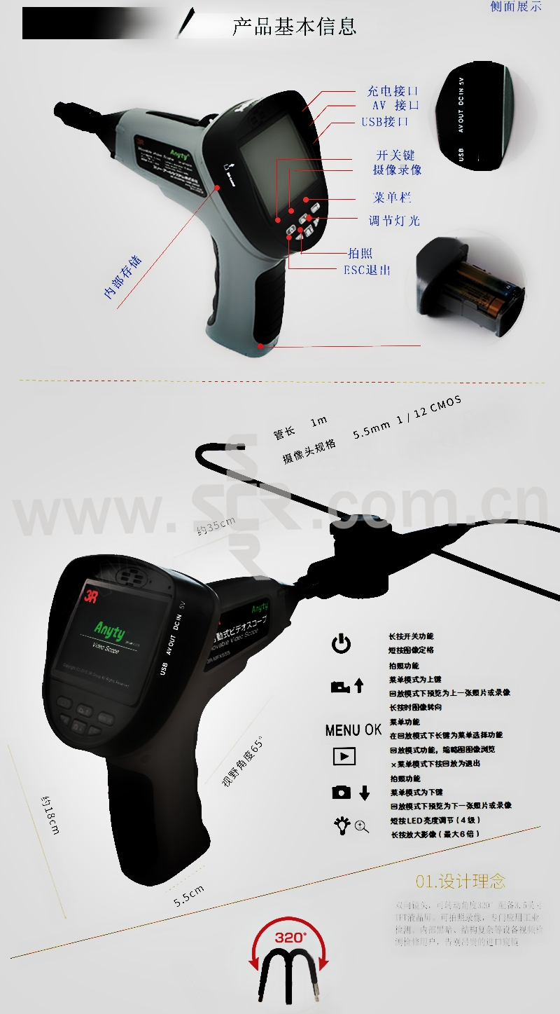 ANYTY/艾尼提 双转向视频工业内窥镜 3R-MFXS55 直径5.5mm 长度1m 双转向 1台