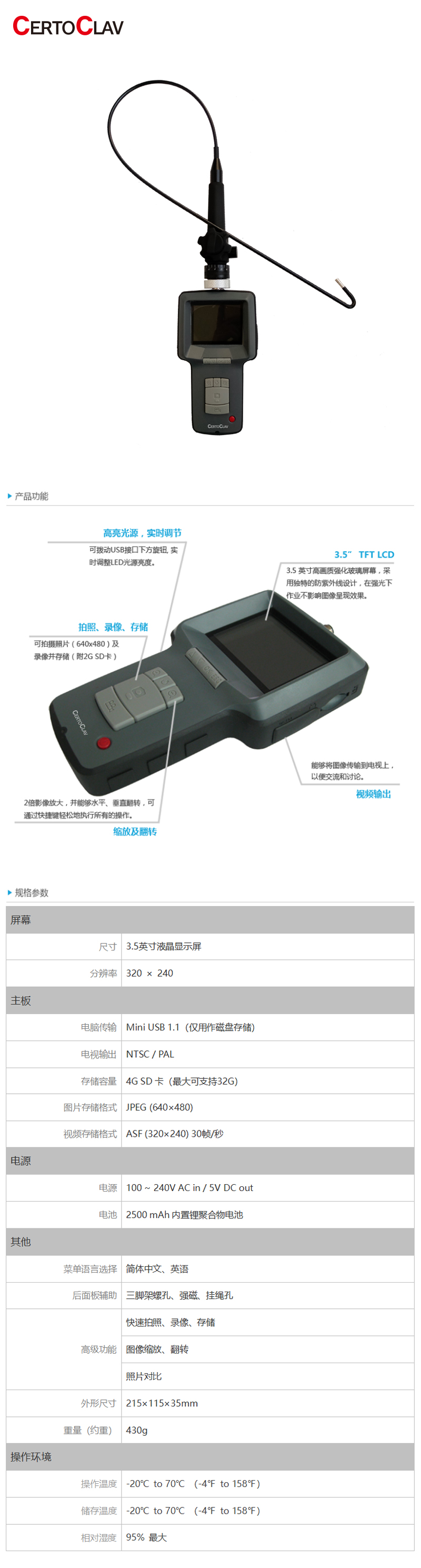 经久耐用,长期免费服务,质保期1年,3.5英寸液晶显示屏,分辨率:320 × 240