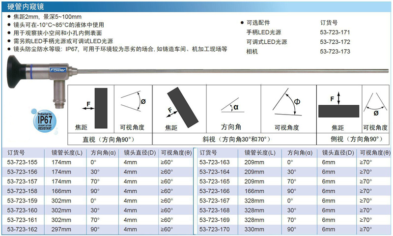 ·可选配件 订货号手柄LED光源 53-723-171;可调式LED光源 53-723-172;相机 53-723-173
