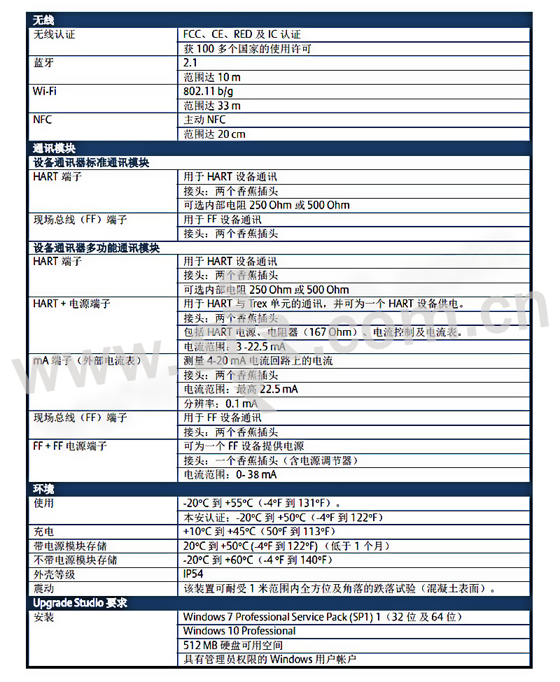 ·AMS Trex 设备通讯器不仅丰富了艾默生手持设备的种类,还增加了新的功能,以满足用户对手持通讯器功能 的期望。AMS Trex 设备通讯器具备诸多创新功能,如:大尺寸、全彩触摸显示屏,直观的、基于任务的用户 界面,以及全新的回路供电技术(无需外部电源和电阻),具有简单、灵活、方便的特点。通过艾默生标准 支持(1 年)和高级支持(3 年)选项保护您的 Trex 通讯器。