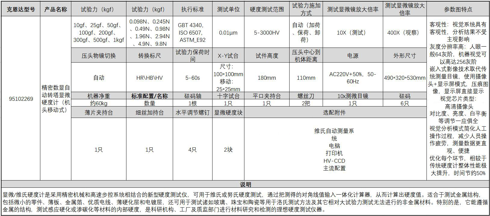 精密数显自动转塔显微硬度计 95102269 硬度测试范围5~3000HV 1个