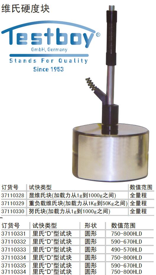 ·Testboy 提供多种洛氏,布氏和维氏硬度制的硬度测试试块,以及便携式硬度计试块
