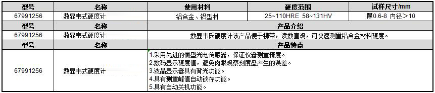 ·数显韦氏硬度计该产品便于携带,读数直观,可快速测量铝合金材料硬度。