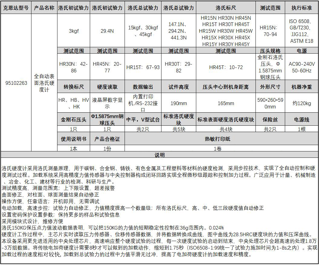 全自动表面洛氏硬度计 95102263 590×260×590mm 1个