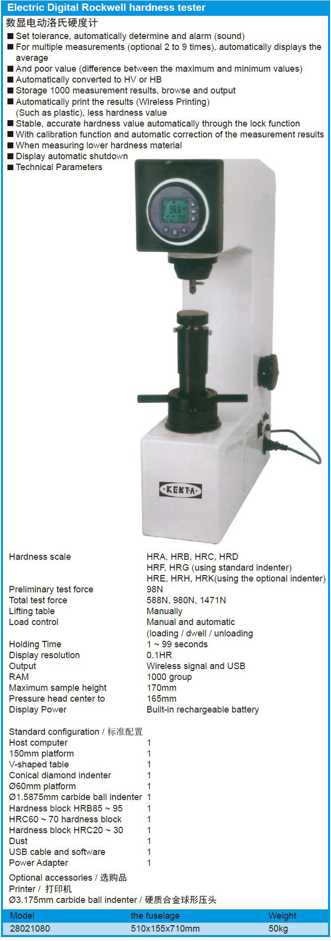 数显电动洛氏硬度计 028021080 510×155×710mm 1台