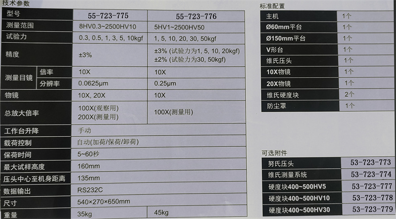 A71814 53-723-776 5HV1-2500HV50 ±3%(试验力为1,5,10,20kgf) ±2%试验力为30,50kgf) - 45kg 109000.00