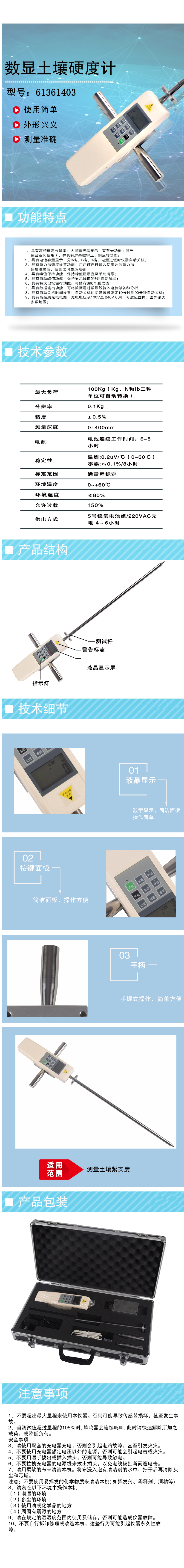K04090 6136 1403 数显式 0~400mm 数显测量 ±1% 土壤 吧硬度计 5200.00