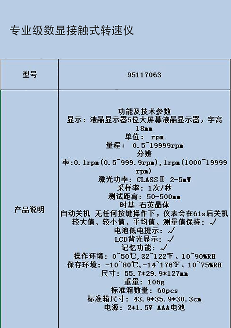专业级数显接触式转速仪 95117063 0.5~19999RPM 1台