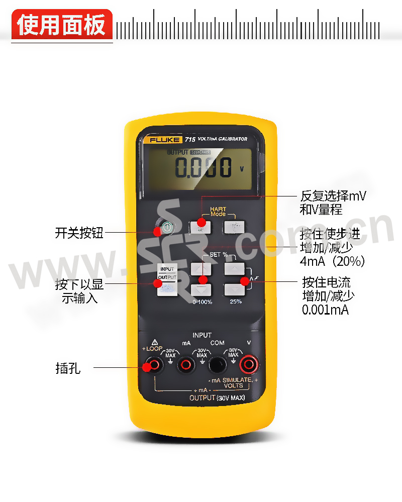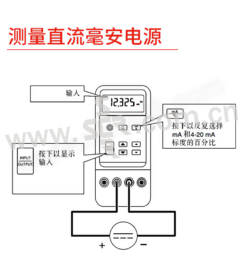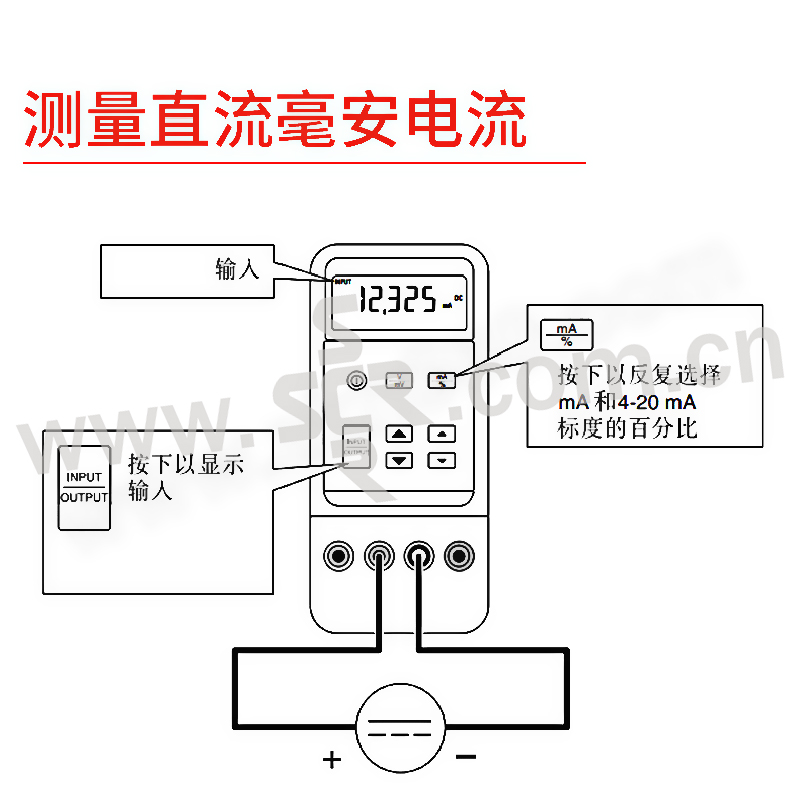 ·测量/输出(mV)量程:0至100mV,分辨率:0.01mV,准确度:0.02%+2个字·测量/输出(V)量程:0至10V,分辨率:0.001V,准确度:0.02%+2个字·测量/输出模拟mA(%跨度)量程:0至24mA(-25%至125%),分辨率:0.001mA,准确度:0.015%+2个字·回路电源:24Vdc,准确度:±10% ·显示:5位数字液晶显示屏