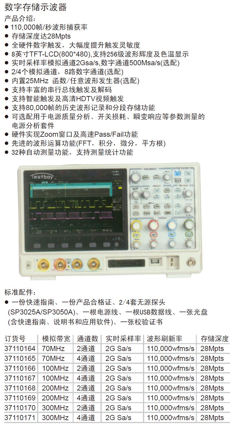 AF041149 37110168 200MHz 2通道 2GSa/s 28Mpts 110,000wfms/s 30930.00