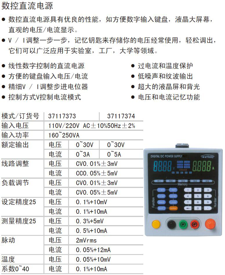 · V / I调整一步一步,记忆钥匙来存储你的电压经常使用,轻松调出,它们可以广泛应用于实验室,工厂,大学等领域。