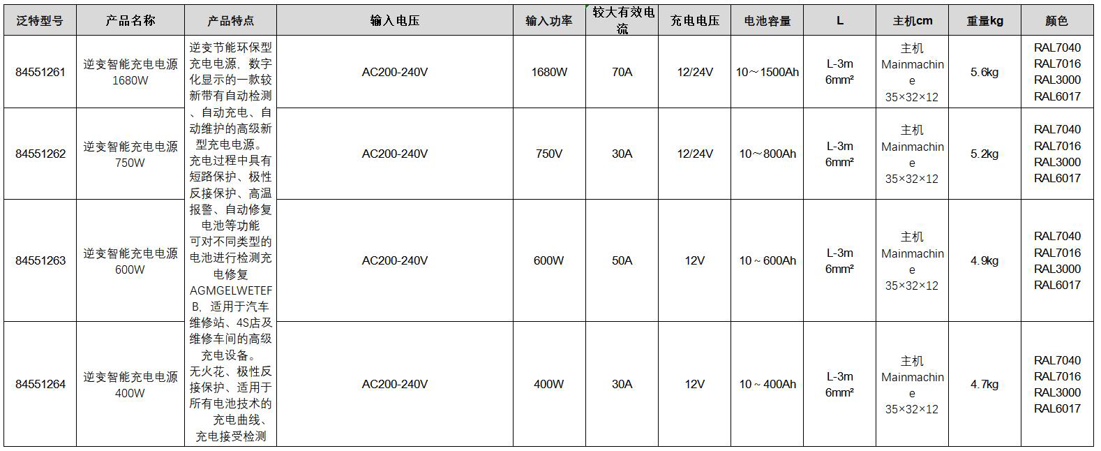 ·逆变节能环保型充电电源,数字化显示的一款较新带有自动检测、自动充电、自动维护的高级新型充电电源。 ·充电过程中具有短路保护、极性反接保护、高温报警、自动修复电池等功能 ·可对不同类型的电池进行检测充电修复AGMGELWETEFB,适用于汽车维修站、4S店及维修车间的高级充电设备。 ·无火花、极性反接保护、适用于所有电池技术的专用充电曲线、充电接受检测