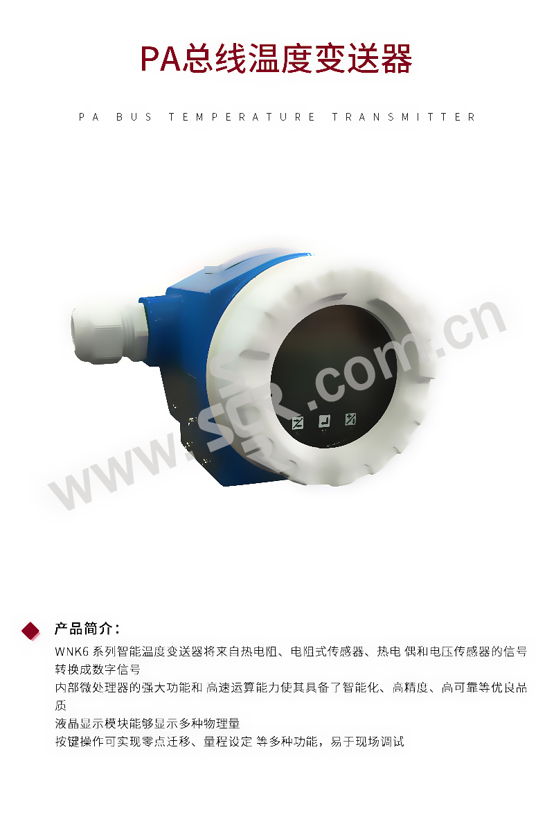 WNK/皖科 PA总线温度变送器 WNK6TAMA PROFIBUS-PA数字通讯 精度±0.075% 可测量气体和液体 LDC液晶显示 供电DC24V 介质温度-20~85℃ 1台